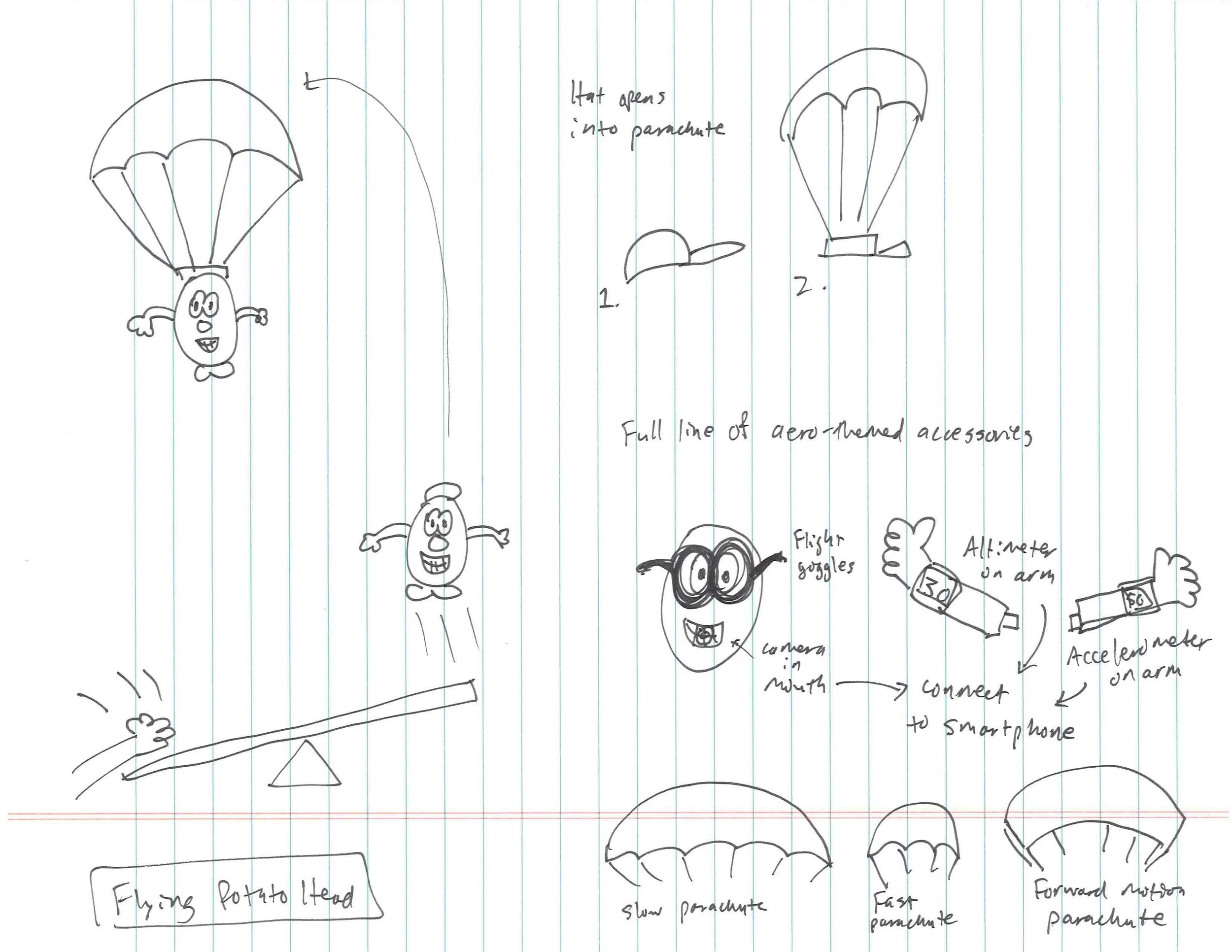 "Mr. Potato Head Adventures" started as a parachute attachment that plugs into his back so kids can throw him up in the air, and evolved into a line of adventure toys that plug directly into his potato body.